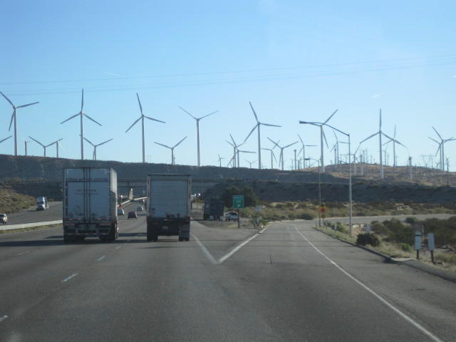 Interstate 10 carries on with 4 lanes each way, even beyond Indio. Traffic is heavy, but we think bikes are permitted.