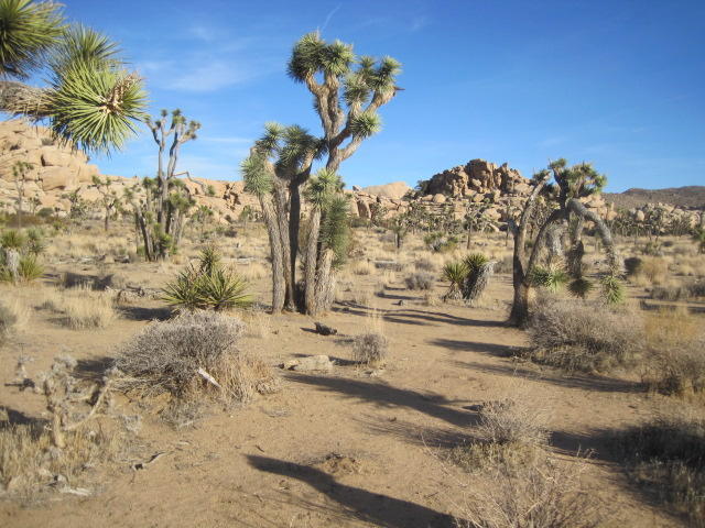 Joshua Tree National Park is north of I-10, and its most interesting parts are in the areas south of Joshua Tree village and 29 Palms. Going there would be a few day detour for anyone crossing the country on a bike, but it could be worth it!