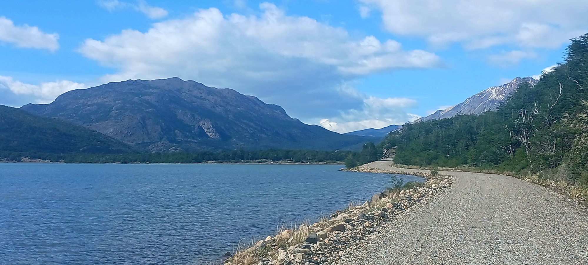 I have ridden the road south prieviously, but I forget how incredibly scenic it is as it passes a lake and further bridges a glacier river flowing from a snow white icefield in a valley to the right and joining the main big river following the valley enclosed by rugget hills.