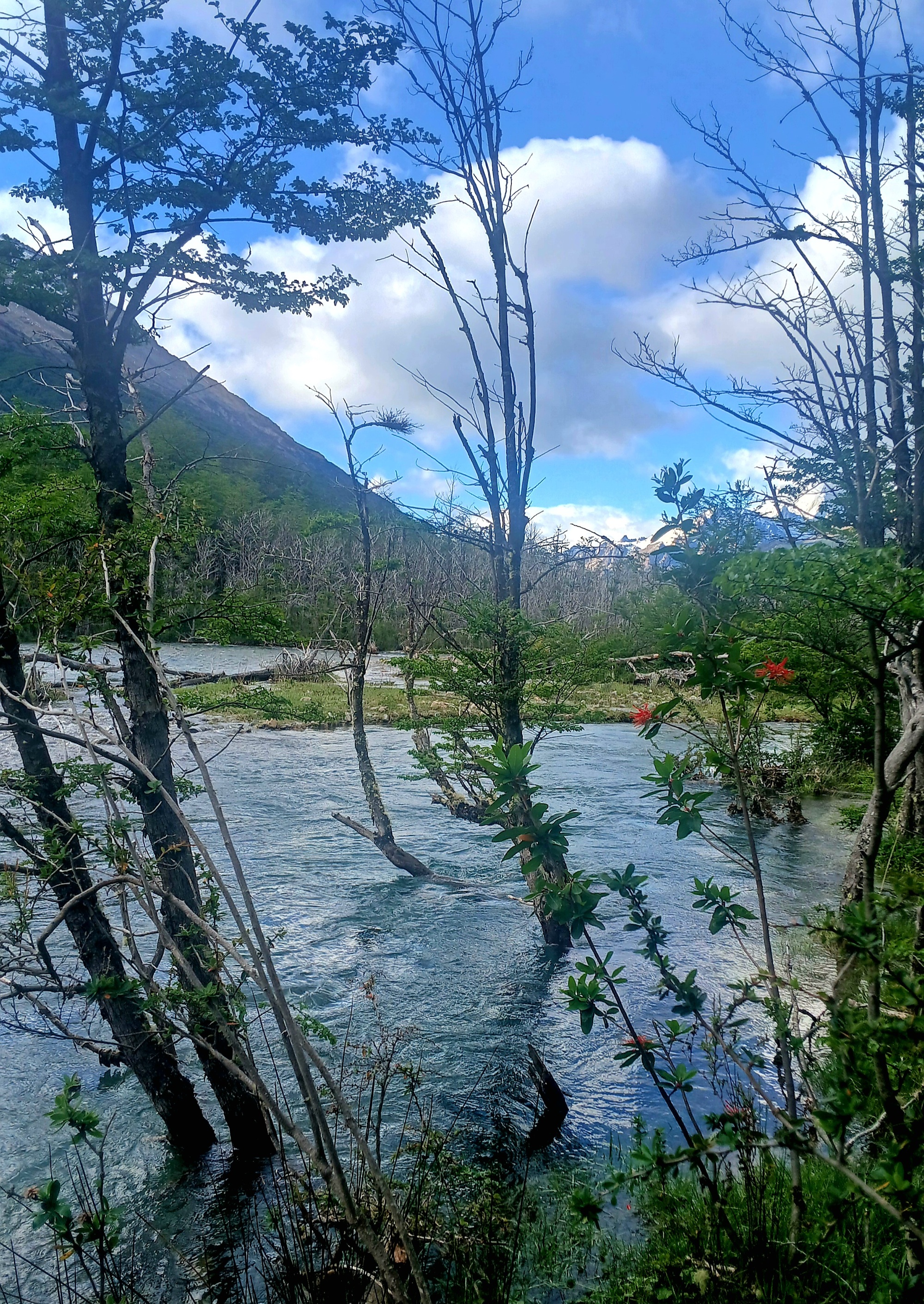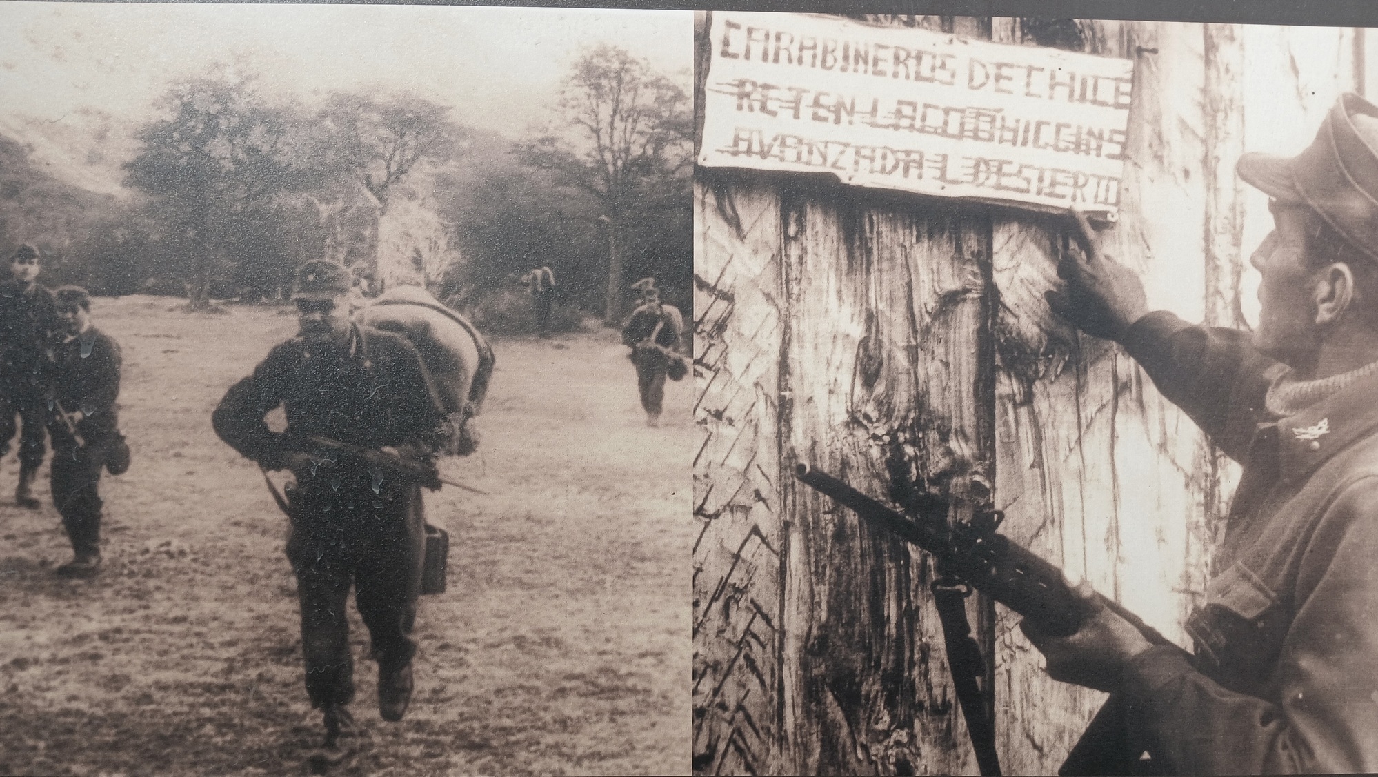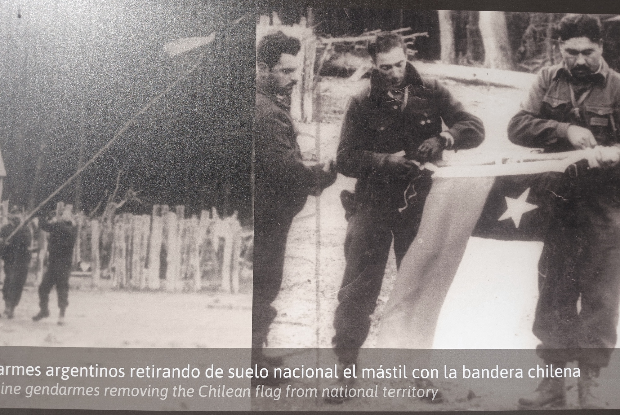 The way passes the scene of a gun battle between Carabineros de Chile and Argentine Gendameria on the afternoon of the 6th of November 1966. The Chilean's who had establish a settlement at Lago O Higgins, advanced further south to the valley below Lago Desierto and raised the Chilean flag at a remote estancia. However, they soon met with fierce resistants from Argentine Gendames and a bloody gun battle ensued, fatally injuring officers on both sides before the Chileans were repelled and the Chilean flag taken down.