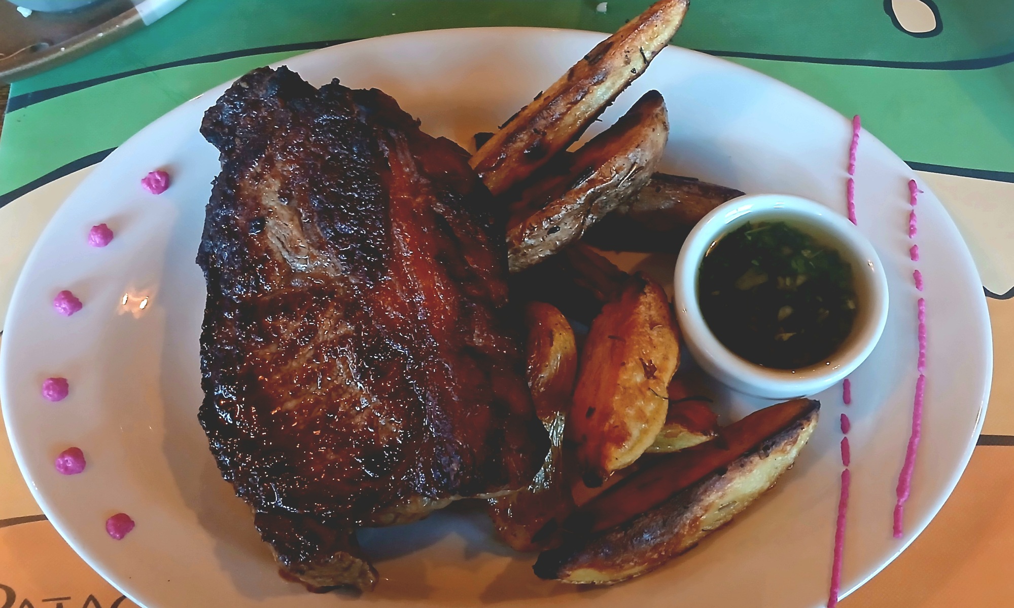 Once checked in and the bivouac set up, struggle with slow internet, that regularly stops and starts. Remind myself of the exchange rate and see that the prices aren't as high as intially thought. Camping, coffee and crepe, empanade lunch costing a total of 24 pounds. Later, I return to Patagonicus for a steak dinner and couple of beers for another 20 quid.