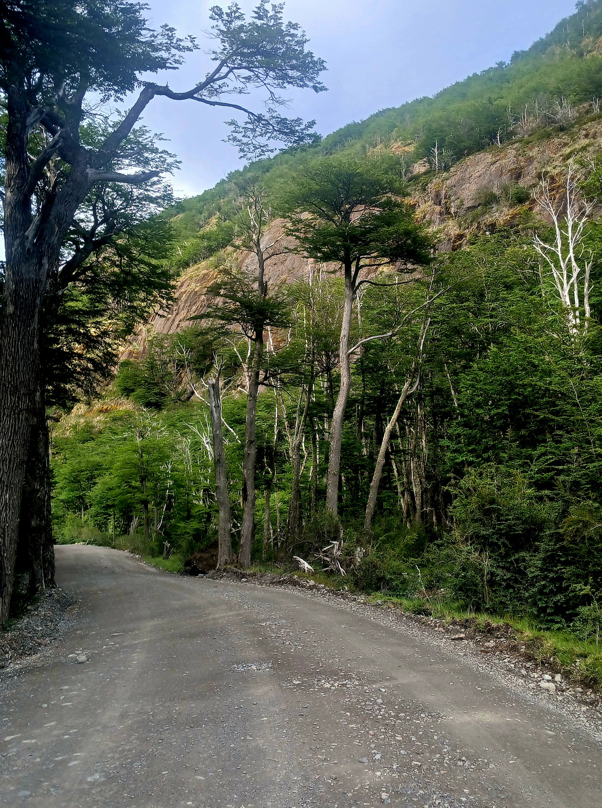 I was out of the bivouac at 07. A sunny morning, or would be but for being closed in a deep valley, in shade of high screed slopes with rocky tops on either side. But I am not cold as I wear a downjacket from the donation shelve in the hostel in O Higgins. A place where so many cyclists finish their trip and off-load articals they no longer need. I badly needed a warm jacket for going south, so had it.