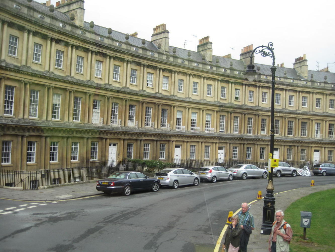 The Royal Crescent, a giant semi-circular Bath stone building can be seen. It figured in Jane Austen's social life. There is also the Assembly Rooms. According to Wikipedia "The Assembly Rooms formed the hub of fashionable Georgian society in the city. Citizens would gather in the rooms in the evening for balls and other public functions, or simply to play cards. Mothers and chaperones bringing their daughters to Bath for the social season, hoping to marry them off to a suitable husband, would take their charge to such events where, very quickly, one might meet all the eligible men currently in the City.