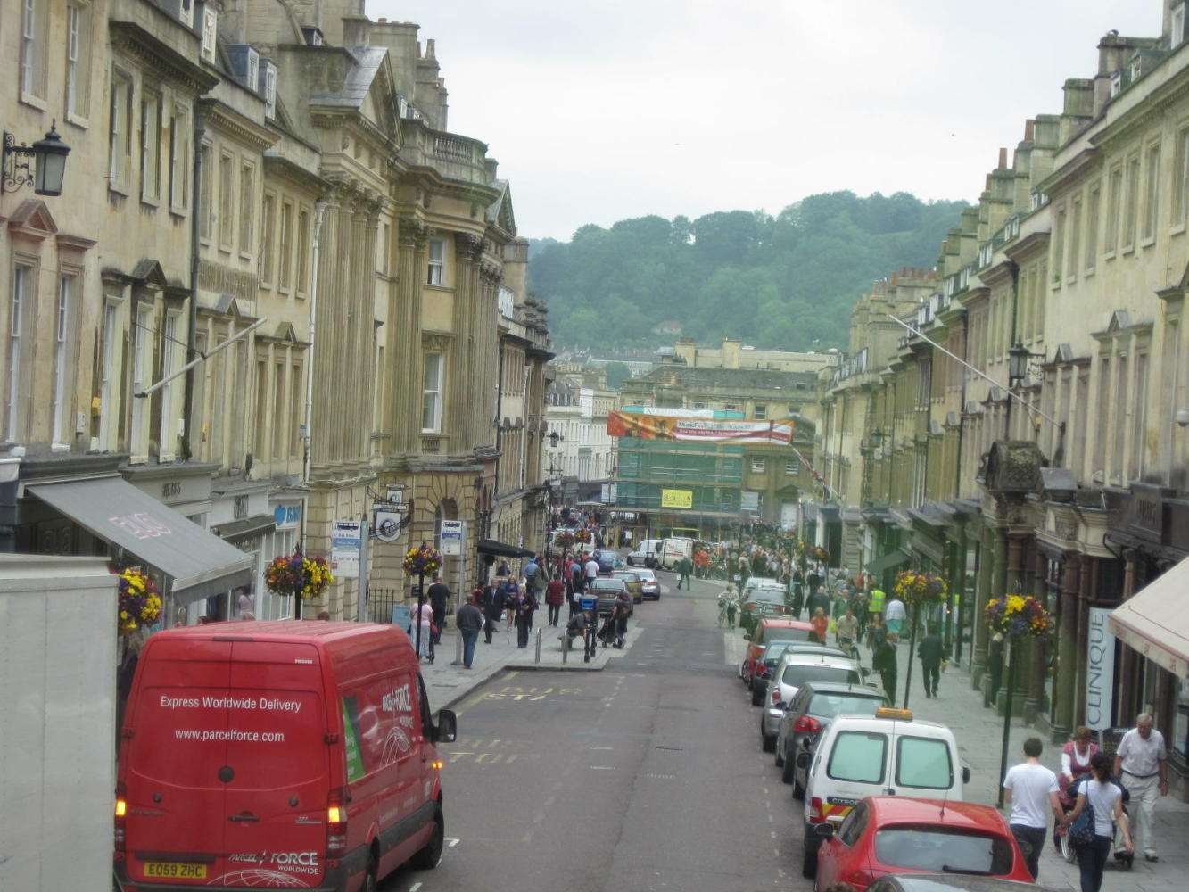 The town is dominated by two forms of architecture: Gothic abbey and churches, and Georgian multi-story residences (like ours), made from Bath stone, and often 300+ years old (like ours, though the toilet seems a bit newer). (p.s. Dodie says I am an ugly American because now I am grousing that the distance from the foot of our bed to the wall is so small that I have to queue to get by.)