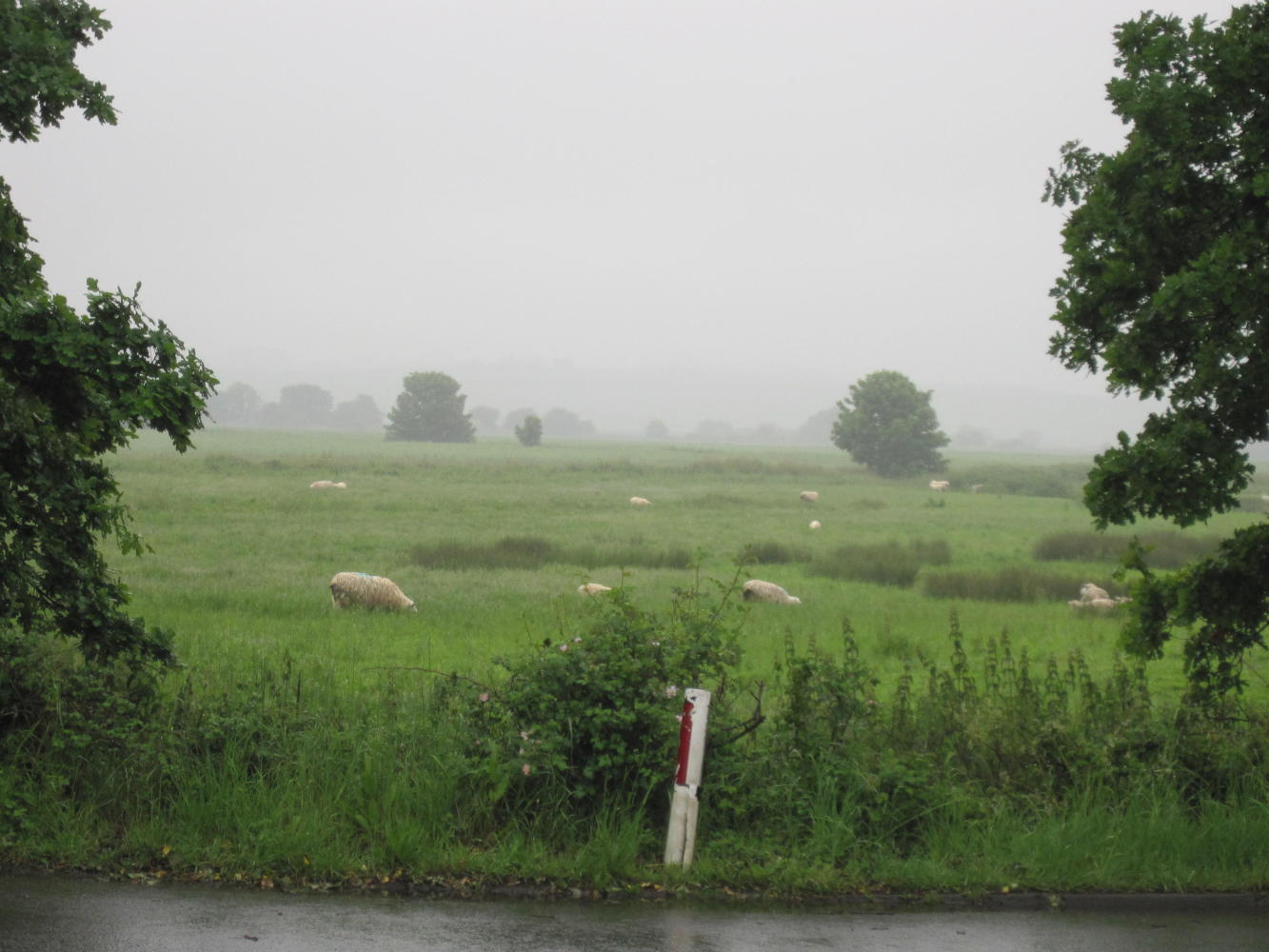 Following the climb, naturally, was the descent. It was 15% for a long distance and then eased to 12%. At the bottom we found ourselves in a world of sheep. As you will see, sheep filled our day. That is because we had entered the Romney Marsh area, and sheep fill the Romney Marsh.