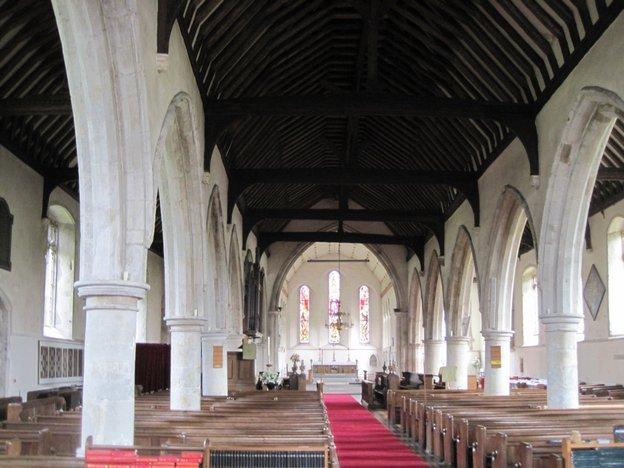 We now ran into the first of a series of churches we were to investigate this afternoon. It started when we just stopped in front of All Saints in Lydd. As we stood there, Joe, who was nearby suggested we look inside. He is very proud of the church, and gave us a tour. We also picked up a pamphlet inside called The Mediaeval Churches of Romney Marsh, and found details of about 15 churches in the towns all around. We ended up seeing four of them, plus one ruins from a distance.