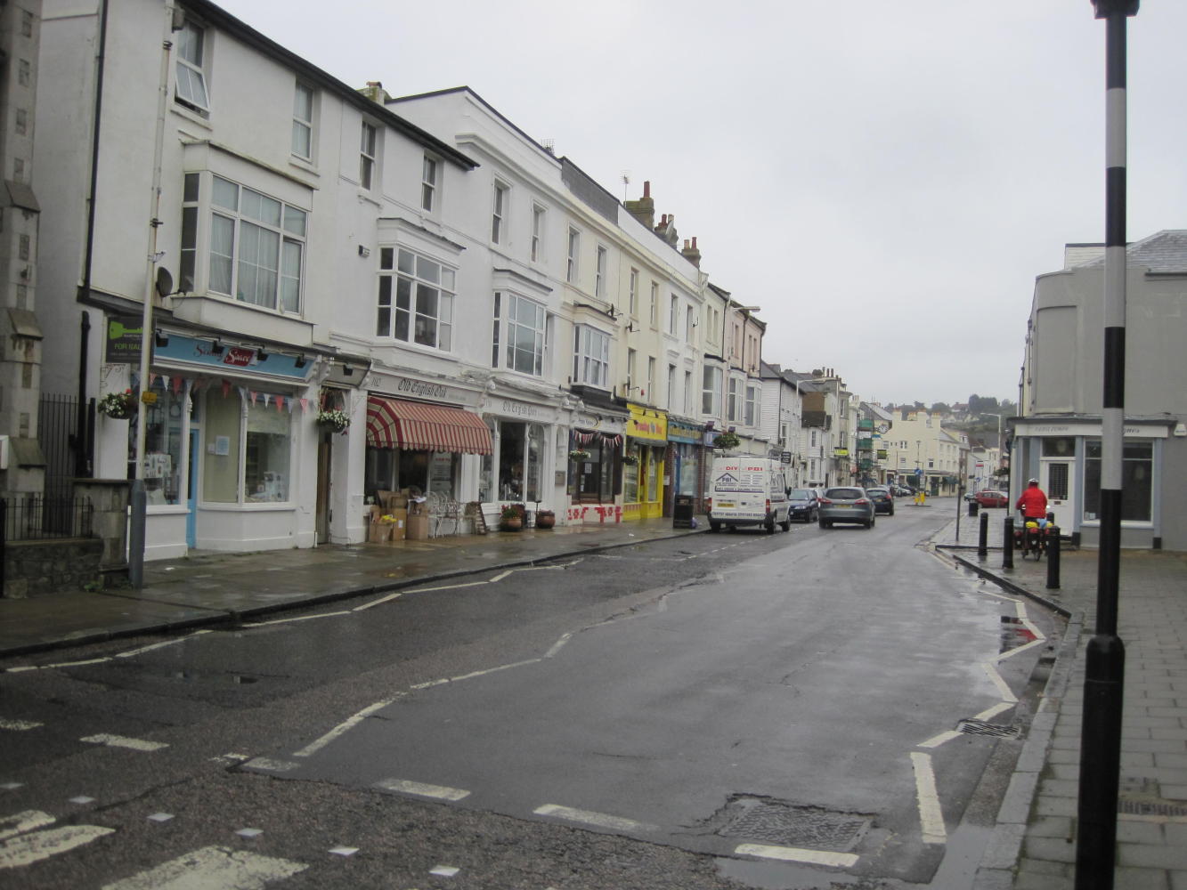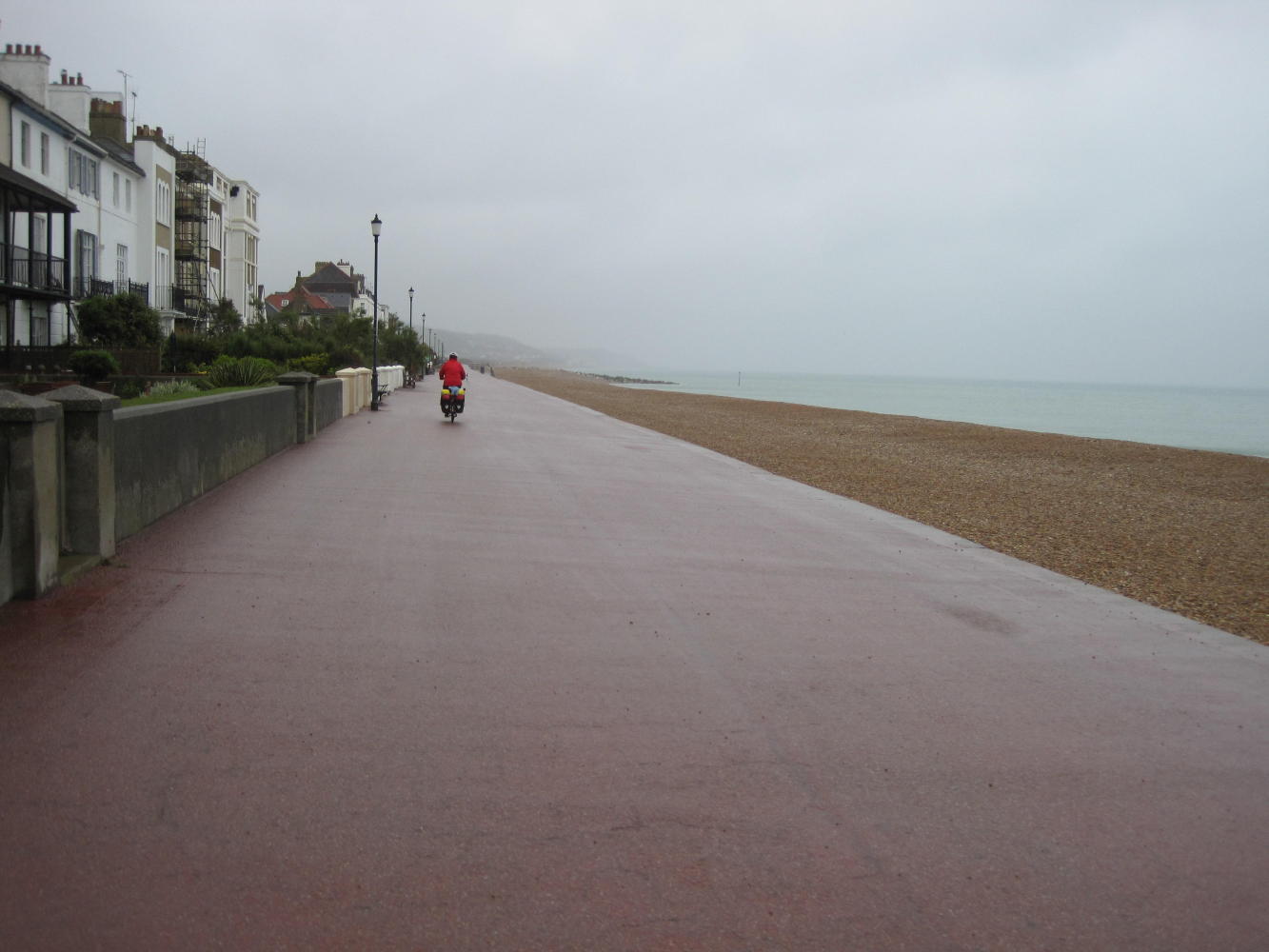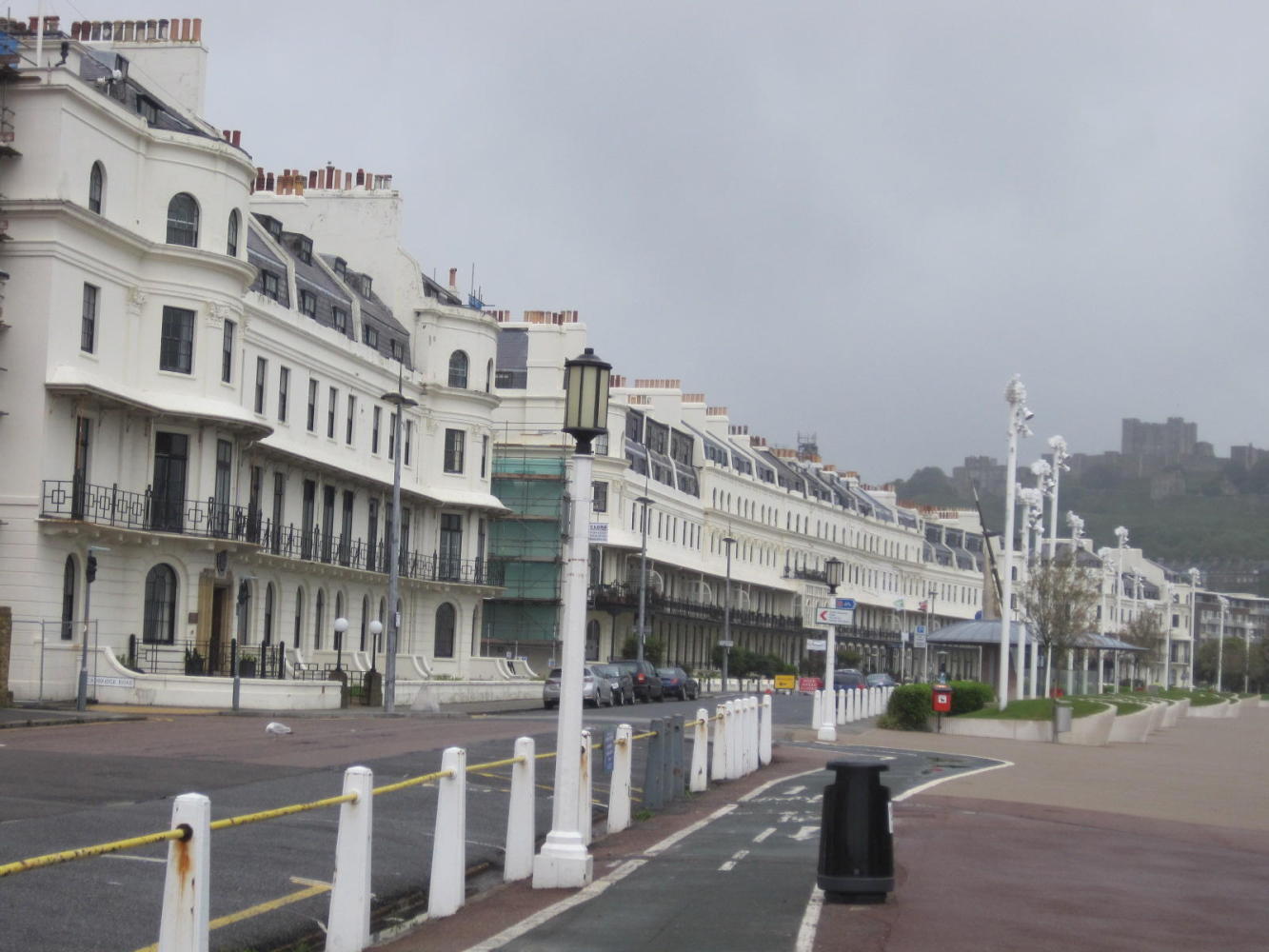 Leaving the Marsh, we set out along the coast, playing the usual game of trying to stay on the NCN 2. As is usual with cycle routes, you are directed away from town centres, groceries, accommodation. So we passed through Hythe and Sandgate and Folkestone without necessarily seeing a lot of them. Here is one bit outside Hythe: