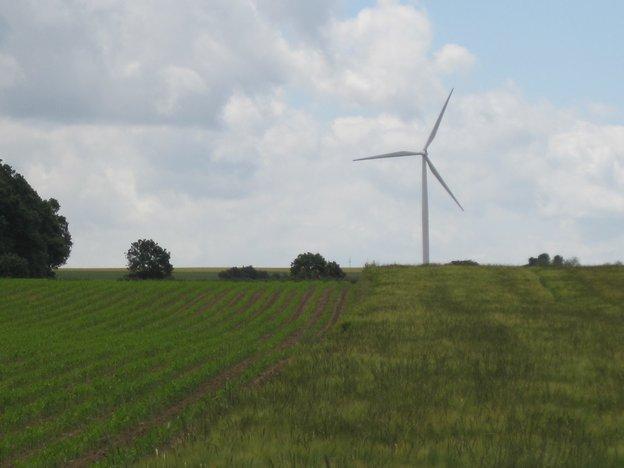 There are quite a few wind turbines to be seen here. They stand in the fields and it strikes me that both the fields and the turbines are simply modes of solar collection.