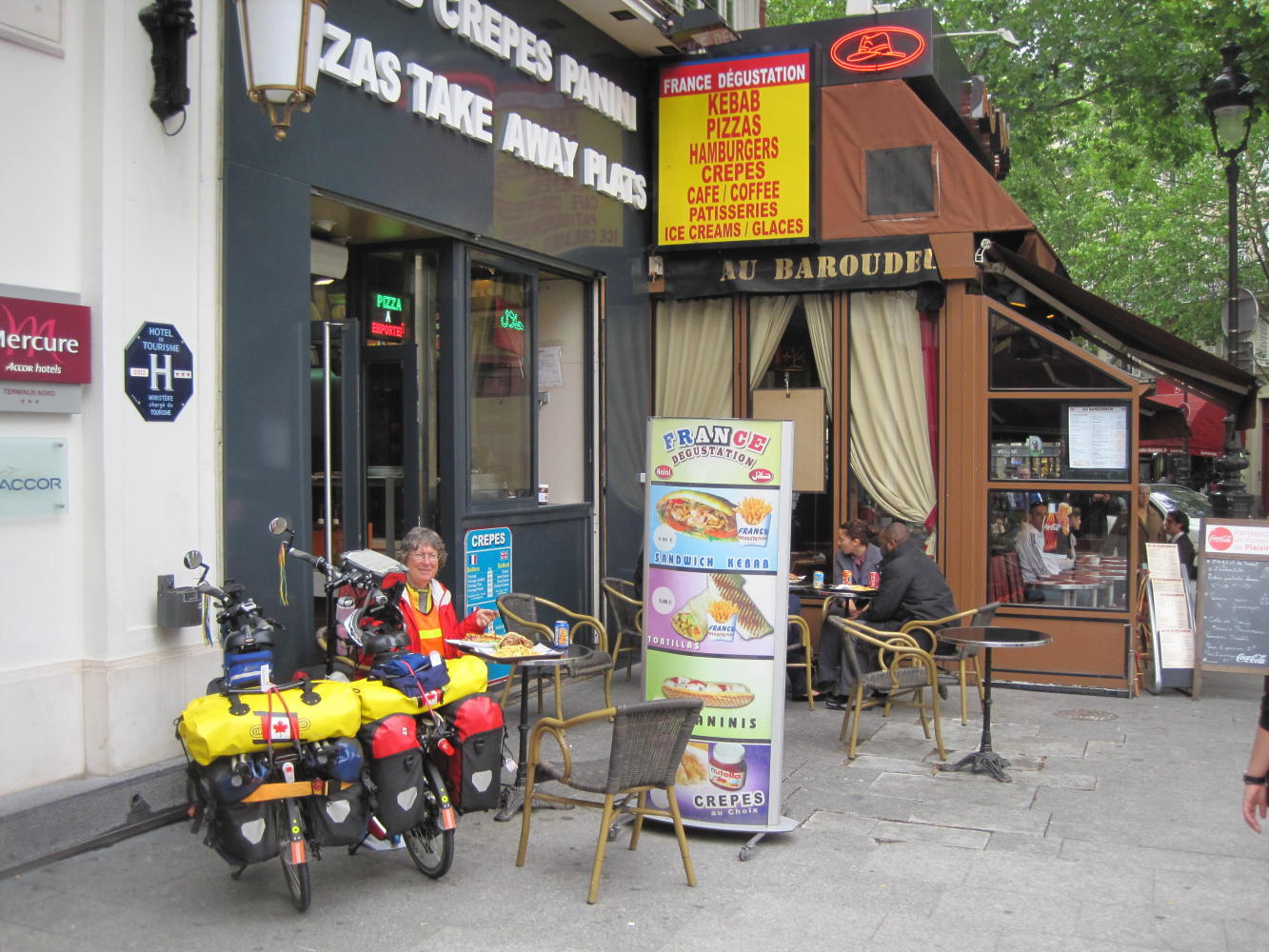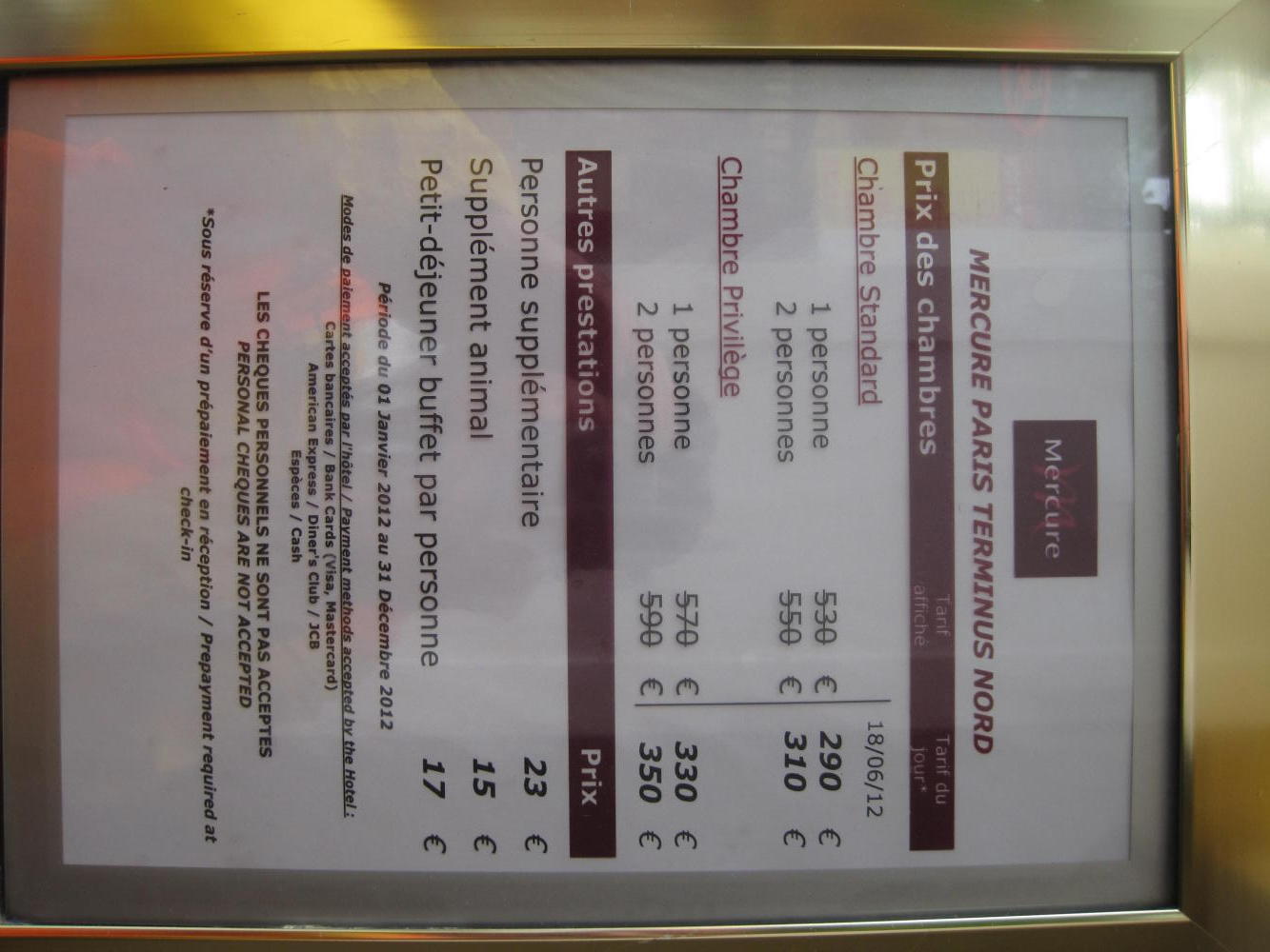 Dodie had carefully recorded the queue sheet from Google maps, showing how to get from the Gare du Nord to Didier's house just beyond the boundary of Paris itself, in the north west. We sallied out into the street, but before starting our shot across the city we perched at a small snack bar beside a hotel. The price list for the hotel certainly caught our attention: