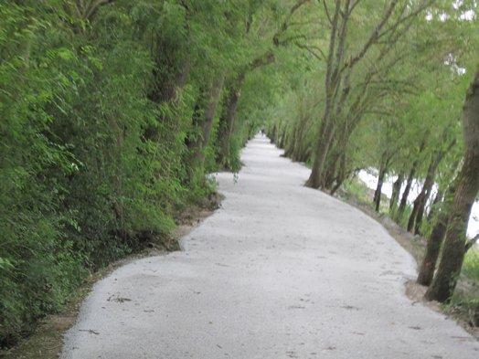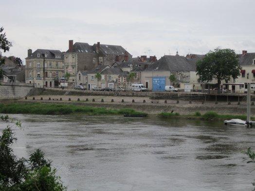 Somewhere along the line (ok, for purists it was at Bouchemaine) we missed a sign and headed up the Maine river toward Anger, rather than sticking along the Loire. We realized our error about 6 km later. We were standing staring at the GPS in dismay (normally, it is off - some of us don't trust it.) when a man stopped to offer assistance. He pointed out our options, for either going to Angers and later back to the Loire, for short cutting back to the Loire, for short cutting to Angers, etc. Being from Angers, he made a strong case for us going there. He convinced me, and I was ready to go, using the shortcut across a little bridge. The access to the bridge was semi-impossible, though, and this led to an extensive "conference" as to what to do next. It was a bit of a mobile conference, as we lurched this way and that before having second thoughts. In the end we returned the way we had come and rejoined the Loire.