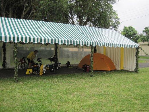 We also noted a covered pavilion, great, since the weather was threatening with wind and later rain. We stuck our tent under there and greatly enjoyed the shelter for cooking and blogging. We also enjoyed the idea that our fly would not be wet from rain when packing in the morning.