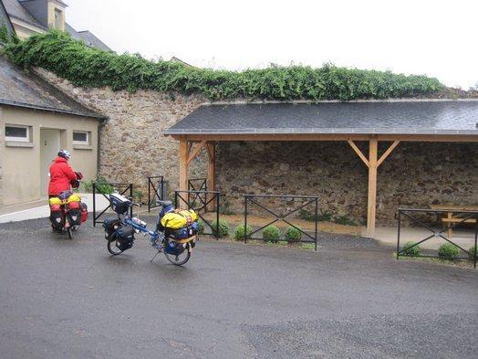 The bike shop in Gennes. They had a bar end mirror to replace the one smashed in the wind in England, at the reasonable price of 12.50 Euros. Marcus installed it too.