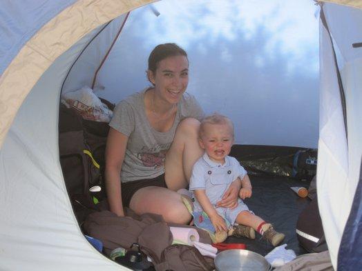 After our baguette and cheese we said goodbye to Artur in the next tent. It had been his first night in a tent on his first bike trip. At 15 months, he found it a bit overwhelming.