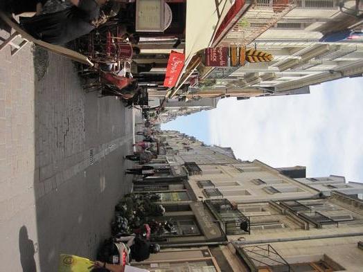 What you don't see in the photo is the two wheeled trailer they are pulling. That is for Zoe when she get tired of pedalling. All in all it was quite a train to sneak through the narrow Tours street.