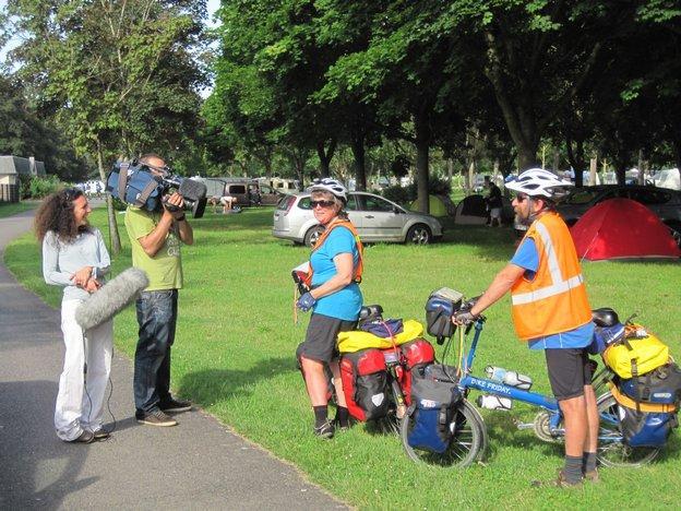 Sometimes (last year) the Grampies made a bit of a splash when rolling into a small town, and we once got interviewed by a local paper somewhere in Minnesota. But today we apparently made the big time when French national television rolled up looking for a story about the Loire cycle way.