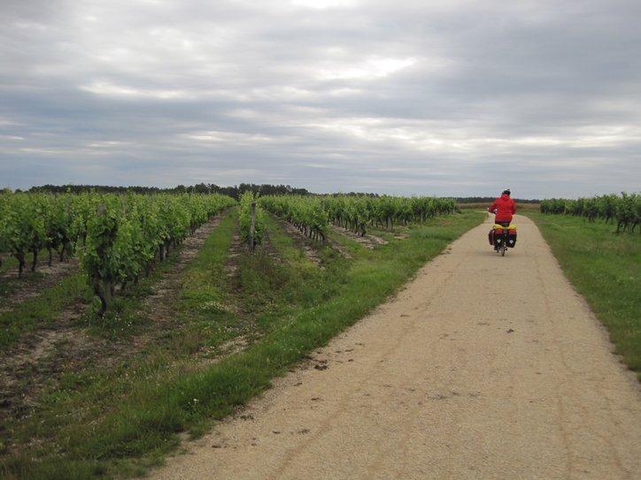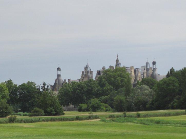 We said our "final" goodbyes again and set off. We were heading for Chambord, said to be the most stunning of the Loire chateaux. It was very close, but we did get to ride a bit more through the vines and some bits of village. I am not sure that I have recorded this phenomenon of riding through the vines, so here is one photo. Our maps are quite purple with little grape symbols, reflecting that if it is not wheat or sunflowers, it's grapes!