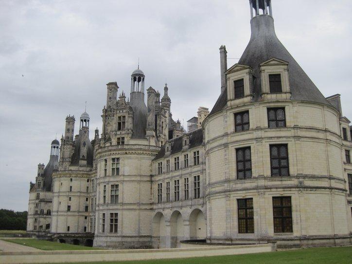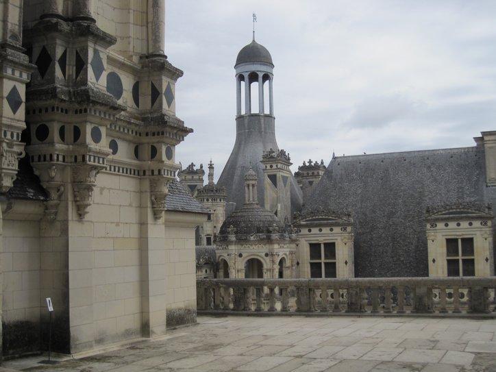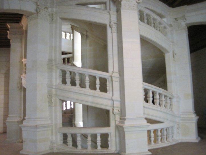 Leonardo died before construction was started on Chambord, and I think the actual architects are unknown. However there seems to be a lot of Leonardo in the design. There is a tricky main spiral staircase (and Leonardo loved tricky spirals) and other spiral staircases in the corners. In addition, the construction is modular, in the sense that symmetrical bits of building (whether square or round in outline) are installed on a grid of perfect squares. A film shown with multiple language subtitles and with computer animated explanation of how the parts are laid out really gives a good account of the remarkable design.