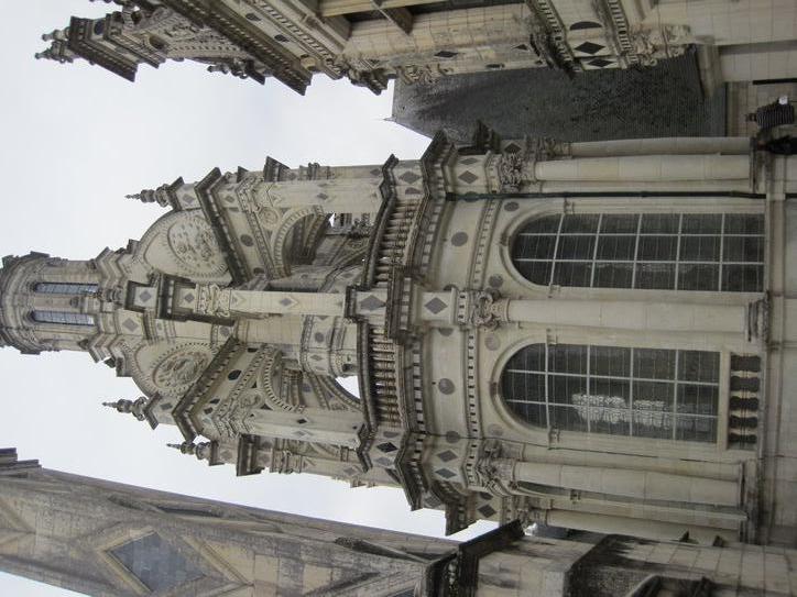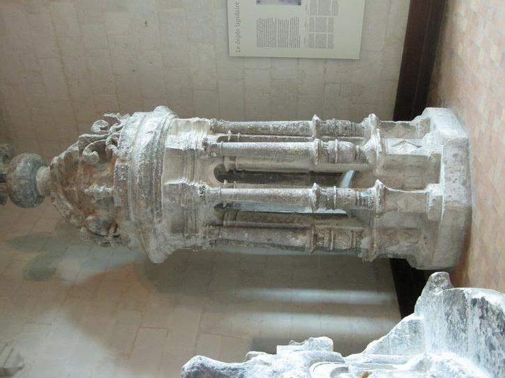 The enormity of the architectual elements is hard to grasp when they are way up on the huge towers. But there was a room where some deteriorated bits had been stashed, and there one could see the scale of them: