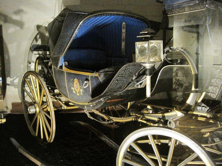 One of the residents was the Compte de Chambord. In 1871 it looked like a restoration of the monarchy in France was in the works, and this fellow was to be the king. It fell through, because he refused to reign under the tricolor flag of the revolution (demanding the royal white flag, or somesuch). Meanwhile, someone in royal procurement had rushed off and ordered a bunch of royal coaches from the #1 coachbuilder of the time, Binder. So when the deal fell though, someone was stuck with eight or so new Binders. Five ended up on display at Chambord. There are three Berlins, a Calash, and a Coupe.