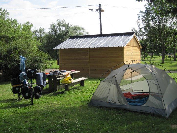Despite the sunny day yesterday and seemingly clear night, a thunderstorm hit around 7 a.m. That caught us literally napping. Darn. Now our fly gets to be packed away soaking wet (again). We are working hard to keep our tent from molding away to nothing in sunny France.