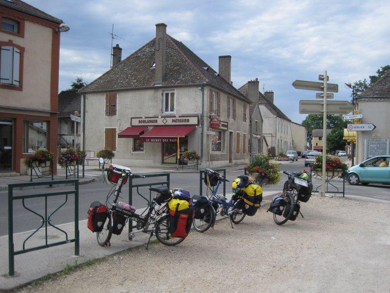 We rolled out of the campsite and into downtown Chagny. Since Camping is often just on the outskirts of a town, it is possible to come from the countryside into a campsite and not realize how close "civilization" is.