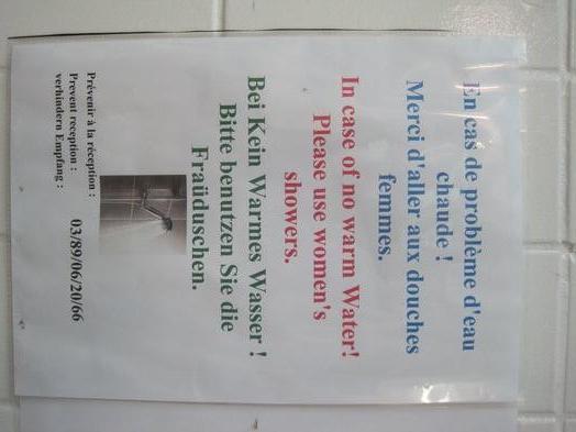 The day also started with a humorous sign. Would I use the shower with or without the women? Anyway, I'm glad the "reception"" forecasted this issue!