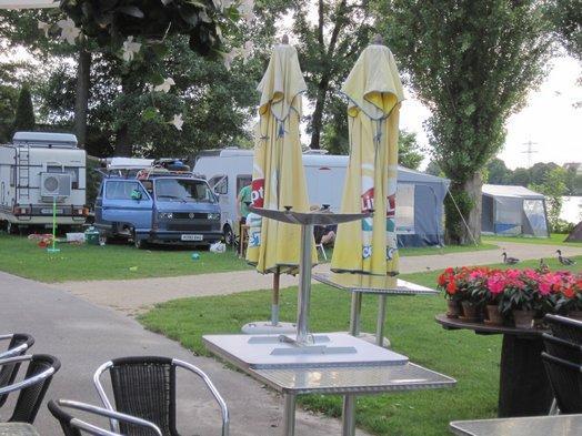 To say that the camping was less organized than the places in France would be generous. The man in the "restaurant" directed us casually as to where to place our tent, making no comment about the cost, the location of the facilities, or anything else, though he spoke good English. We hurredly put up our tent because we were really hungry and too tired to cook.
