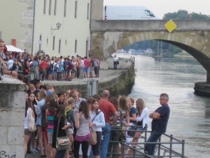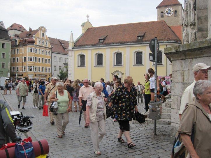 This plan worked out and we were into town before most credit card tourists had hit the road. However the town was nevertheless swarming with school children touring the cathedral and other medieval buildings. Regensburg has a 2000 year history and is said to have the greatest number of preserved structures.