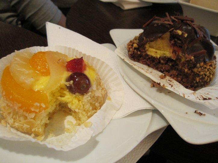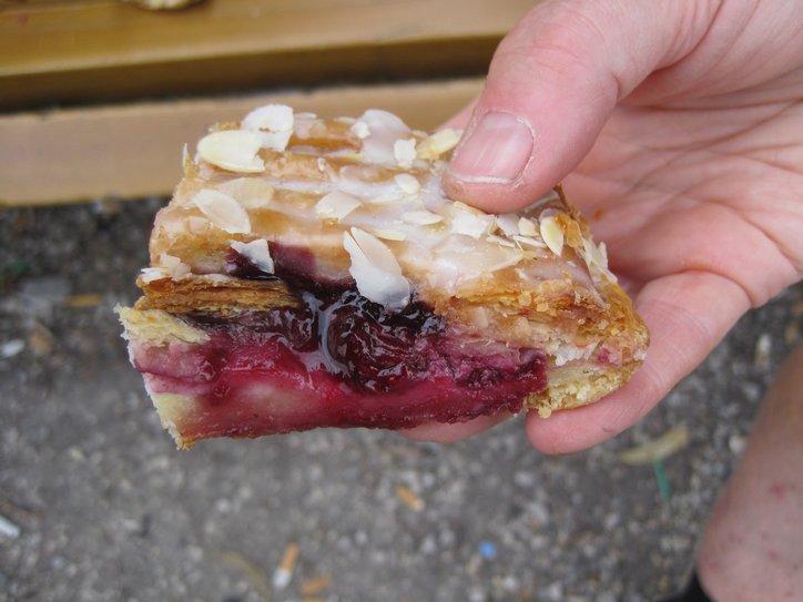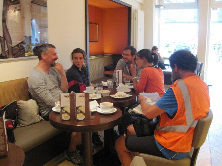 We were at this point, plotting our return to the bakery, when Sascha and Irina rolled up. And in short order, Aude and Roman as well! All these agreed that the first order of business in town was coffee and pastry, so there was unanimity on the point. As the pastry experts, we lead the way back.