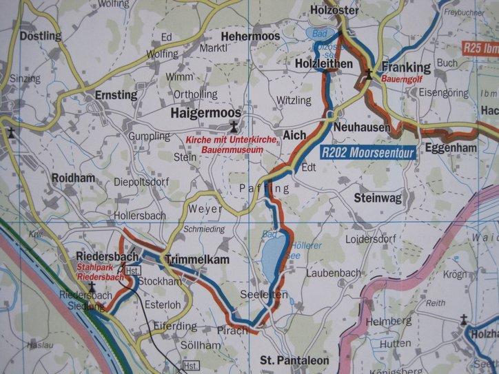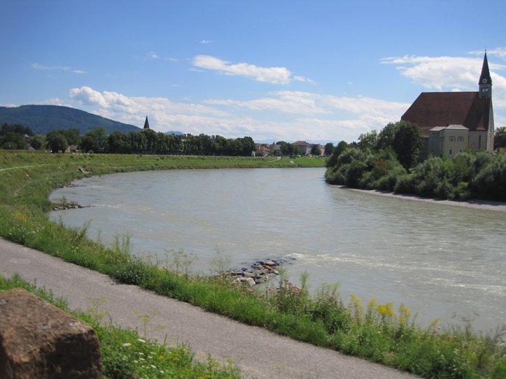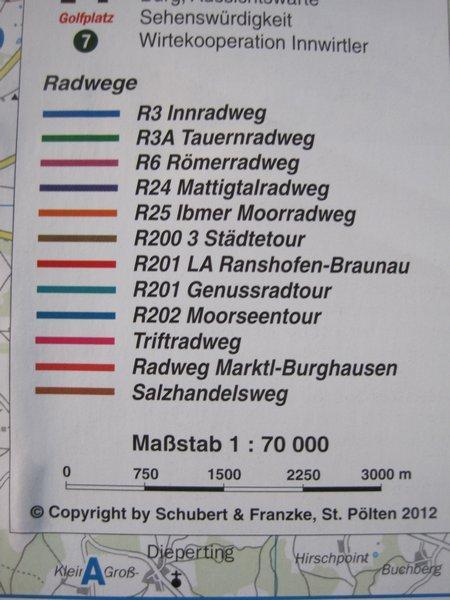 This meant going to the first intersection and looking at the vast array of radweg signs. In fact, there are at least a dozen signed routes weaving through this area. We chose a likely one to take us to the Tauernradweg, which runs beside the Salzach, up to Salzburg.