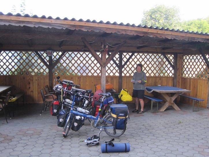 Our camping spot was more of a back yard of a gasthaus. This was great because we had it all to ourselves. Nearby was not only the sanitary facilities but our favourite thing, a shelter with tables and power. After cooking our oatmeal in this luxury facility, we set out.