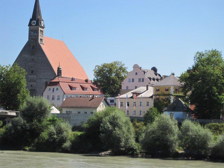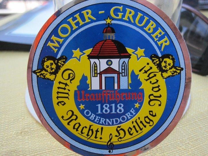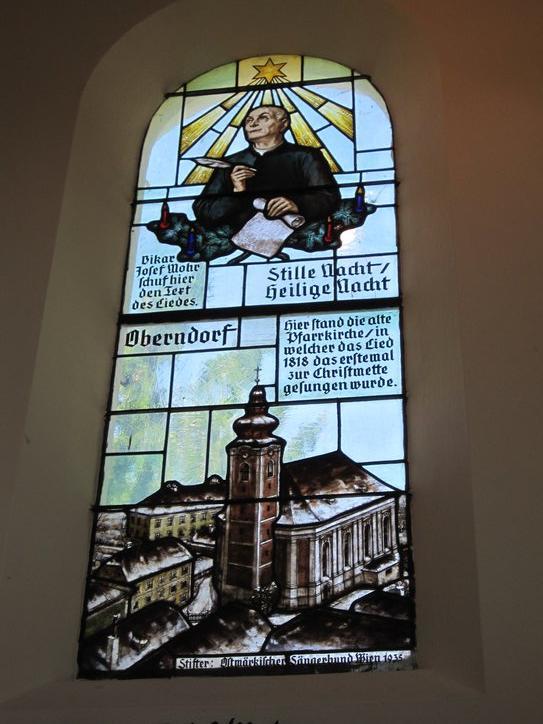 We wanted to be sure not to miss Oberndorf, the town where Silent Night was composed and first sung (in 1818). No problem, because not only is Oberndorf right on the radweg, but signage directed us right to the chapel that stands on the site of the original (St. Nicholas) church. The Stille Nacht Platz includes the chapel and a museum/gift shop, as well as the Stille Nacht Café. None of this is even slightly garish. It is wonderful and touching. In the chapel are tributes to Joseph Mohr, who wrote the poem, and Franz Gruber, who composed the music. These tributes take the form of two stained glass windows, one dedicated to each person.