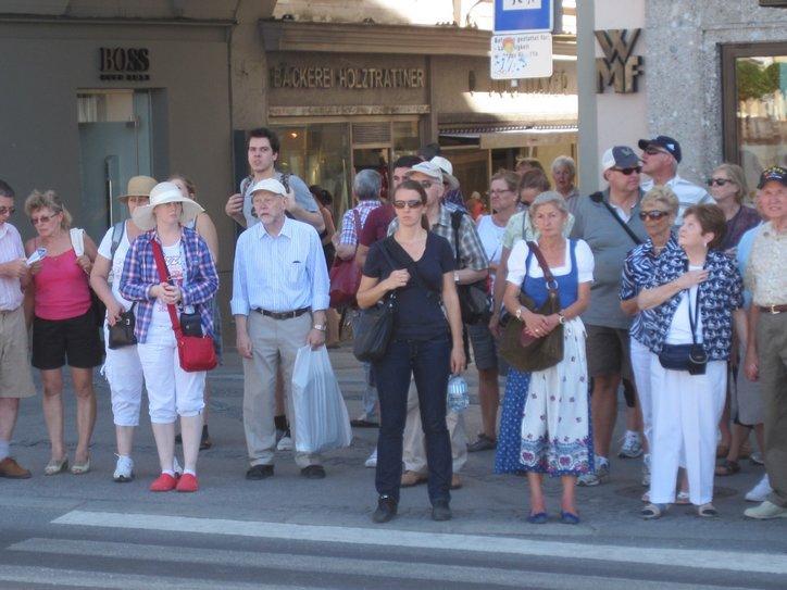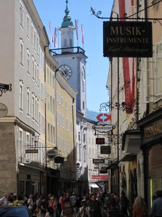 About the second theme, Sound of Music: Salzburg has not forgotten. In fact, there is a Sound of Music bus tour, to places featured in the movie and playing the soundtrack. It would have taken up 4 hours though, and cost 69 euros each, so we passed. On the other hand we were anyway walking through the setting of the movie as least for the city part. We expect to see (or almost see) Julie Andrews in the hills as we approach the Dachstein mountains later. On the other hand, the lake district beyond Salzburg is not exactly in our path, so the bus tour would have been a help there, had we had the time.