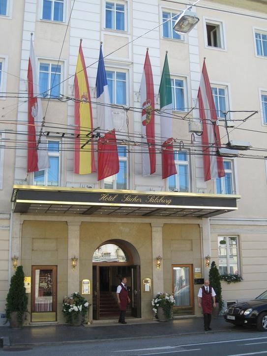 I tried “Sacher Torte” in various places, strangely finding the best one at the Continental Hotel in Bankok. But always I wanted to go to Vienna to try the original. So that in no small part is why this tour extends East at least to Vienna! It was Dodie today who stumbled on the fact that there is a Sacher Hotel in Salzburg. Could I have been mistaken about Vienna? The internet cleared it up – they have hotels in both places, with Vienna being the original. However, after stumbling on the fact of the hotel here, we quickly found that it is a five star hotel, and a huge structure on the river, downtown. To make stumbling even easier, it has Sacher Hotel Salzburg emblazoned on it in neon!
