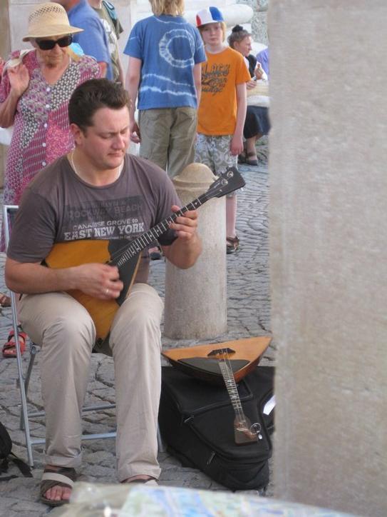 One of two balalaika soloists. We bought one of the groups CDs (for Dodie to carry another 3000 km!. )Although the young woman who took my money spoke to me in German at first, she had a mildly Mongolian look to me, though Dodie thought it more gypsy (probably right).