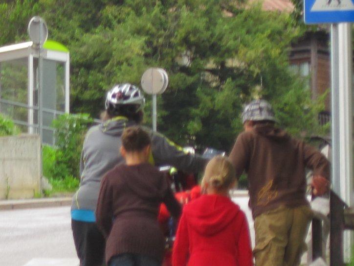 On the way to Radstadt we naturally encountered a fair number of people along the path. As usual, we greeting them, but we found ourselves sort of ignored by a few more than expected. We began to wonder about the people here, but this was dispelled in the town by a mom and four kids who peppered us properly with all the usual questions. We snapped their photo and promised to put them in the blog. Here is the photo. We will put the names in shortly.