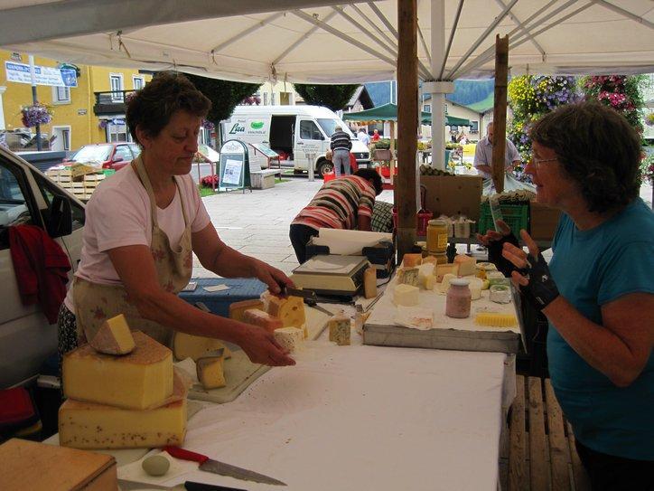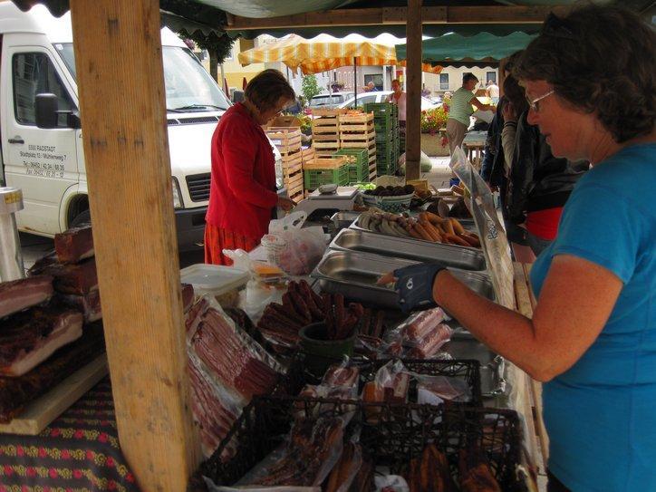 A market was just finishing in Radstadt, but there was still time for us to buy some cheese and salami. It turned out these were are bit "too authentic" for Dodie, and I found them a bit weird too. Still, they kept us going.