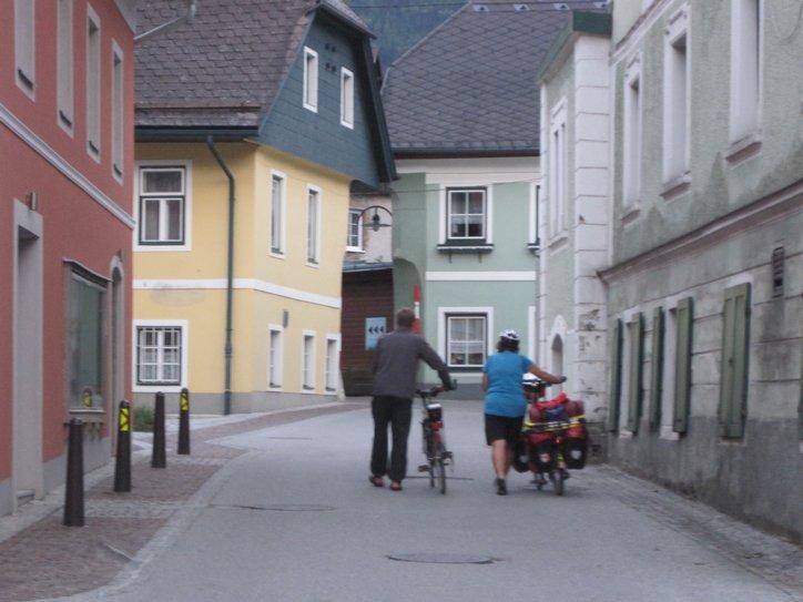 The main shopping area of Radstadt is up a short but steep hill. Despite the distance to be covered in the day we decided to have a look and began to push the bikes up. The family thought they should give us a boost, and did they ever! It was like having an electric bike! Thanks friends.