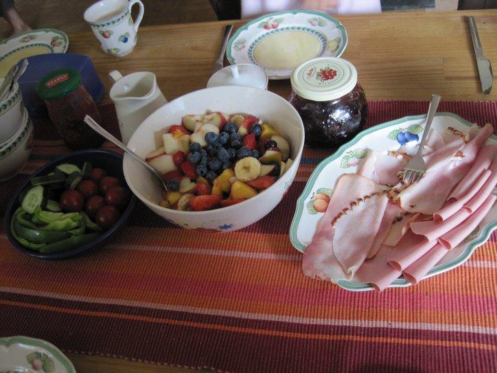Breakfast actually also included other yummy stuff - cheese, sliced meat, bread buns, fruit salad. These are the German standards, and much more substantial than the French coffee and croissant.