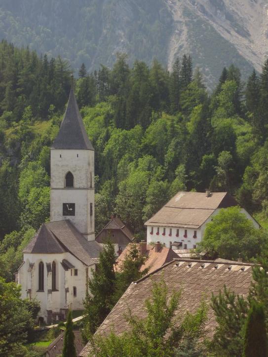 On a small hill beside Grimming mountain is the hamlet of Purgg. Tourists (including people from Irdning!) are not allowed to bring their cars up into the village, so you have to park below. The village contains Johanneskapelle, a 1000 year old chapel containing frescoes from around 1160. Unfortunately the chapel was closed, so we did not see the frescoes, however we did walk around a nearby church, not as old (like, who knows, only 500 years?)