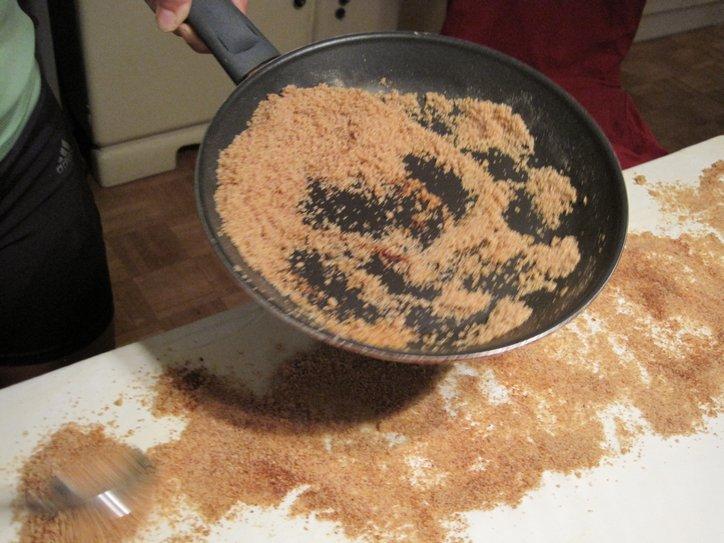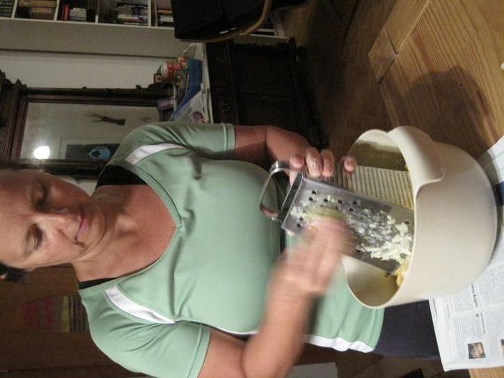 A strip of the dough was then coated with breadcrumbs, to receive the apple filling. The filling (using cinnamon, of course) is made from grated apples and is quite juicy. The breadcrumbs absorb and control this juiceness.