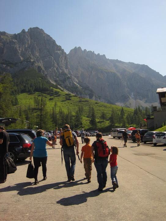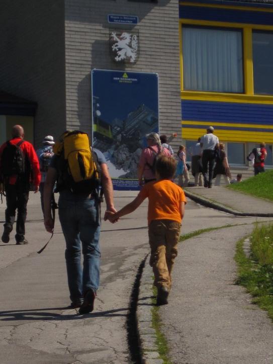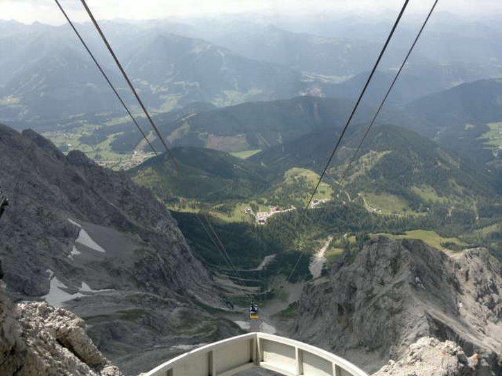 The Dachstein can be accessed by a gondola that leaves from near the little town of Ramsau. Christian and Birgit took us there, with the kids, and we all rode to the top. If you are very tough and have four hours to spare, you could conceivably climb to the cable car station. Otherwise, the fare is also "steep", about 20 Euros each.