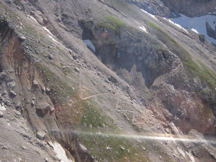 One of our objectives on this ride has been to revisit Walter's land, and some specific places where we know he had been. One of those places is the Dachstein mountain range. The Dachstein massif covers an area of around 20×30 km with dozens of peaks above 2,500 m, but there is one peak, the highest, that is commonly called just the Dachstein. We had passed close to the Dachstein as we came down the valley to Irdning, but left it about 40 km behind.