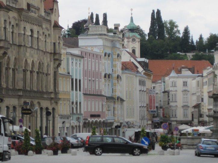 Enns bills itself as Austria’s oldest city, and perhaps it is. However the zone of traffic and modern uninspired building was wide and the old part small. Plus in terms of elegance and impact it did not compare to many towns (such as Steyr) we had already seen. Since our camping prospect was about 15 km further on, we did not linger long in Enns.