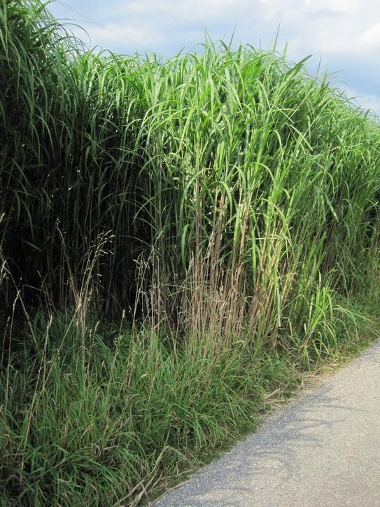 As we pedal by farm fields we usually know what is growing, and its interesting to note the mix of the various crops in the different regions. But this one is a bit of a puzzle. The leaf has a white stripe, like corn, the stalk is like corn and the smell is like corn, but this is a dense planting with no hint of any ears. What is it and what is it used for?