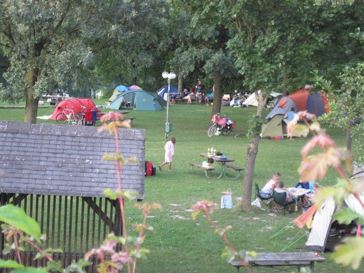 The camping at Au was really slick. Lots of facilities, lots of space, beside the river. There were dozens of cyclists from all over, families in hyperjumbo tents, etc. Best of all (we have been having great luck in this) we could set up our tent beside a covered shelter with tables and power. Yeah!