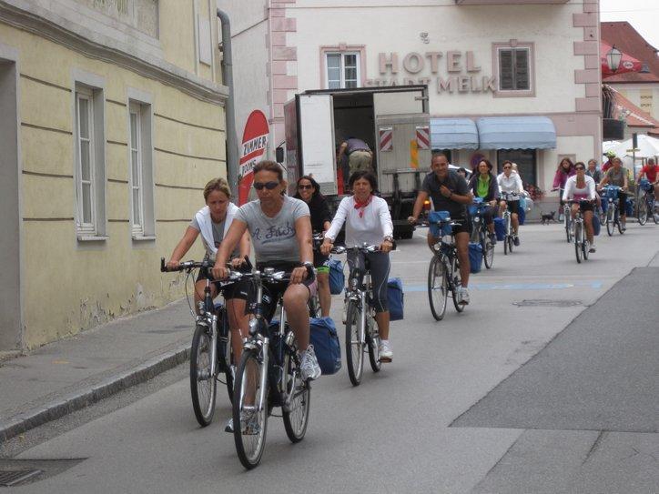 Any zipping along we were doing came to an immediate halt when we hit Melk. First off, you can see Melk (or rather its mammoth Benedictine monastery) from 10 km away, so you know to slow down! Next the monastery truly is mammoth, and its on a hill, so just cycling beneath it is cause for a major wow!