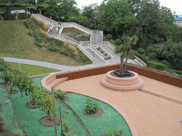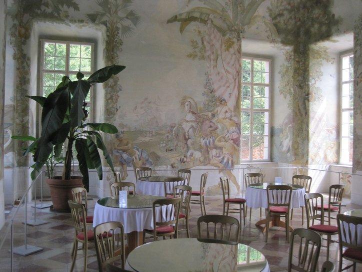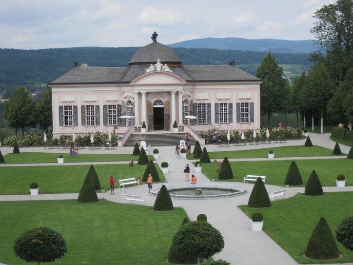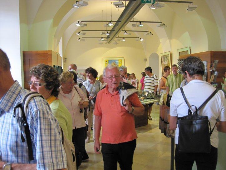 The building (buildings?) is really huge, and comprises a museum (that used to be royal apartments), the "marble room", a large terrace overlooking the town and the river, a library with 16,000 volumes, and a huge baroque church. Then there is a baroque garden pavilion and formal garden, and a "Garden of Paradise", which is a traditional Benedictine herbal garden. Finally there is a restaurant. Oh yes, there are also special displays, in large modern looking rooms. One seemed to be art work by Downs Syndrome people, and the other was a large presentation on alternative energy.