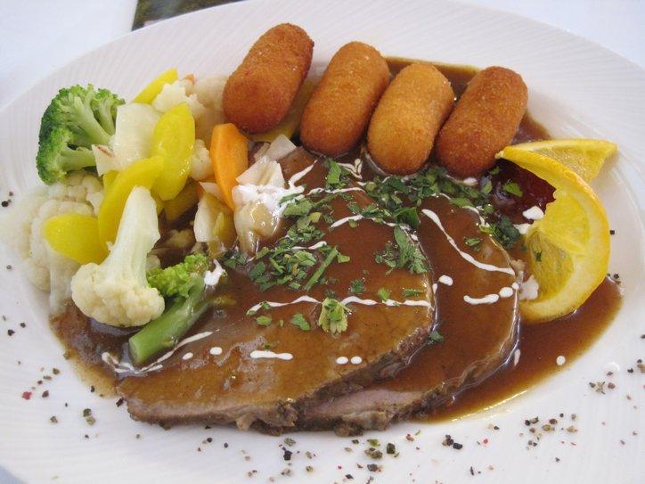 It's hungry work walking around a place like this, so we stopped at the on site restaurant. Although our dishes were a bit ordinary, the beef and vegetables were exactly what we need for cycling, and were in any event delicious.