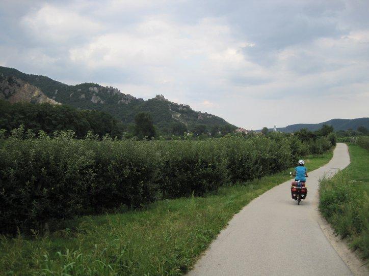 The area approximately from Melk to Krems is known as the Wauchau. The main feature of the region is terraces on the hillsides, on which grapes plus apples, pears, and apricots are grown. However the region is also stuffed with castles, abbeys, and ruins, plus beautiful medieval towns. The rest of our ride this day was though this environment. We bought some trailside apricot marmalade (which we have yet to try) and plums as well. What fun!